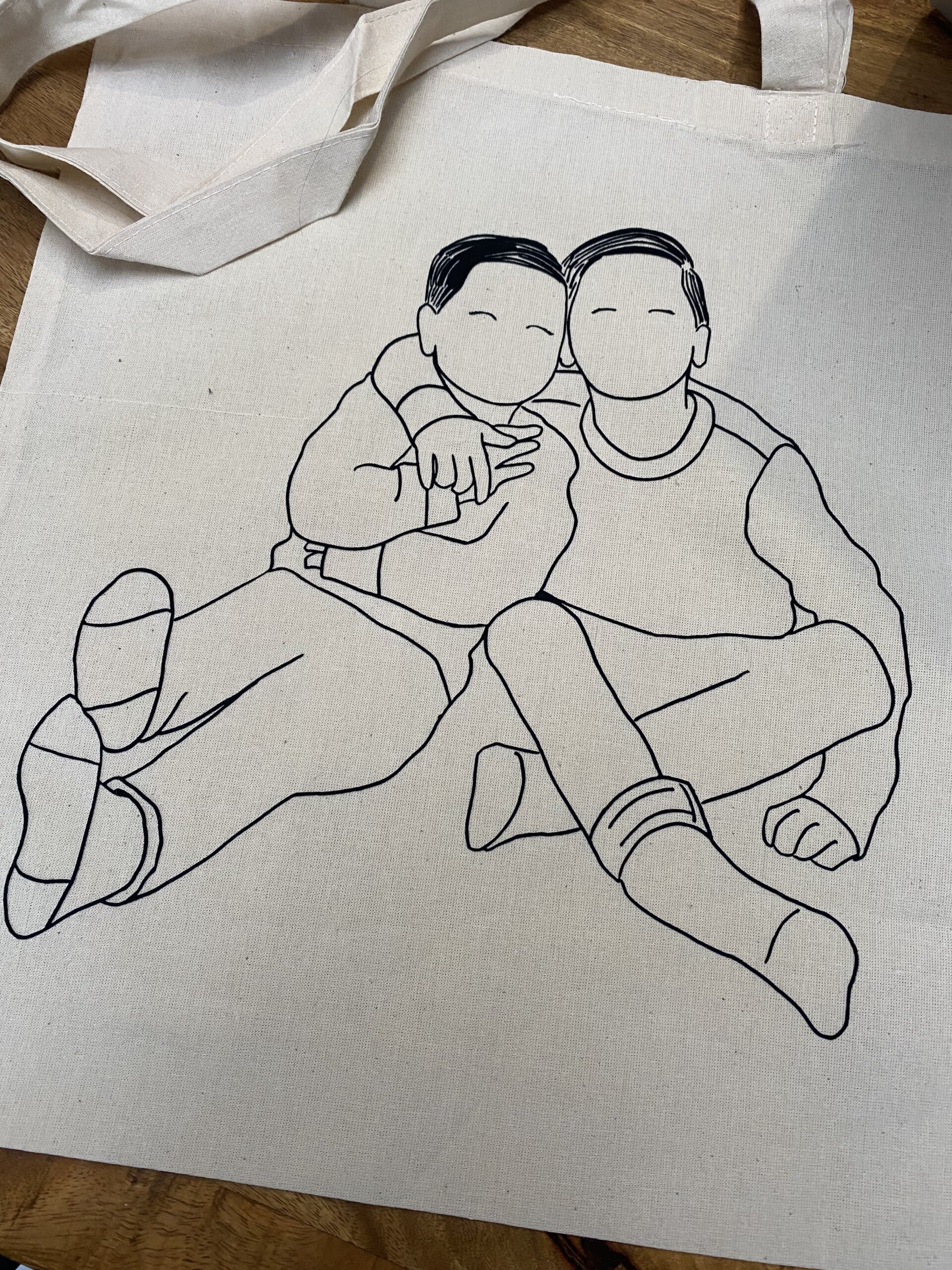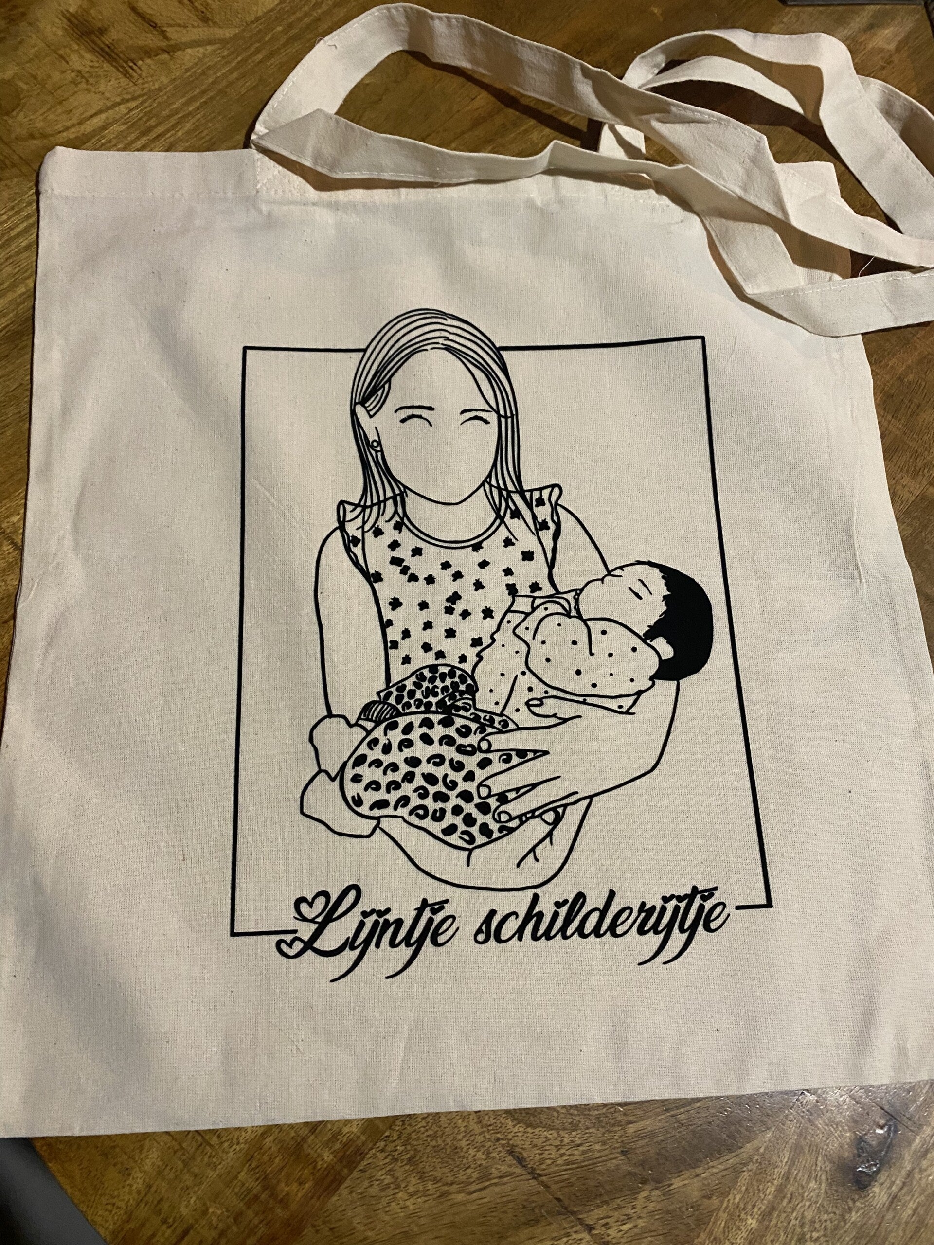 Mooie Tas met jouw lijntje schilderijtje erop. Heb je al een lijntje schilderijtje van ons? Dan hebben we een mooie actieprijs voor je.